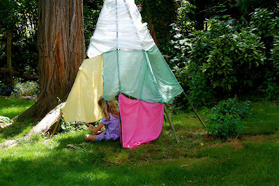 My idea was to make a teepee and drape silk around it to make a fairy house for the child fairies around here