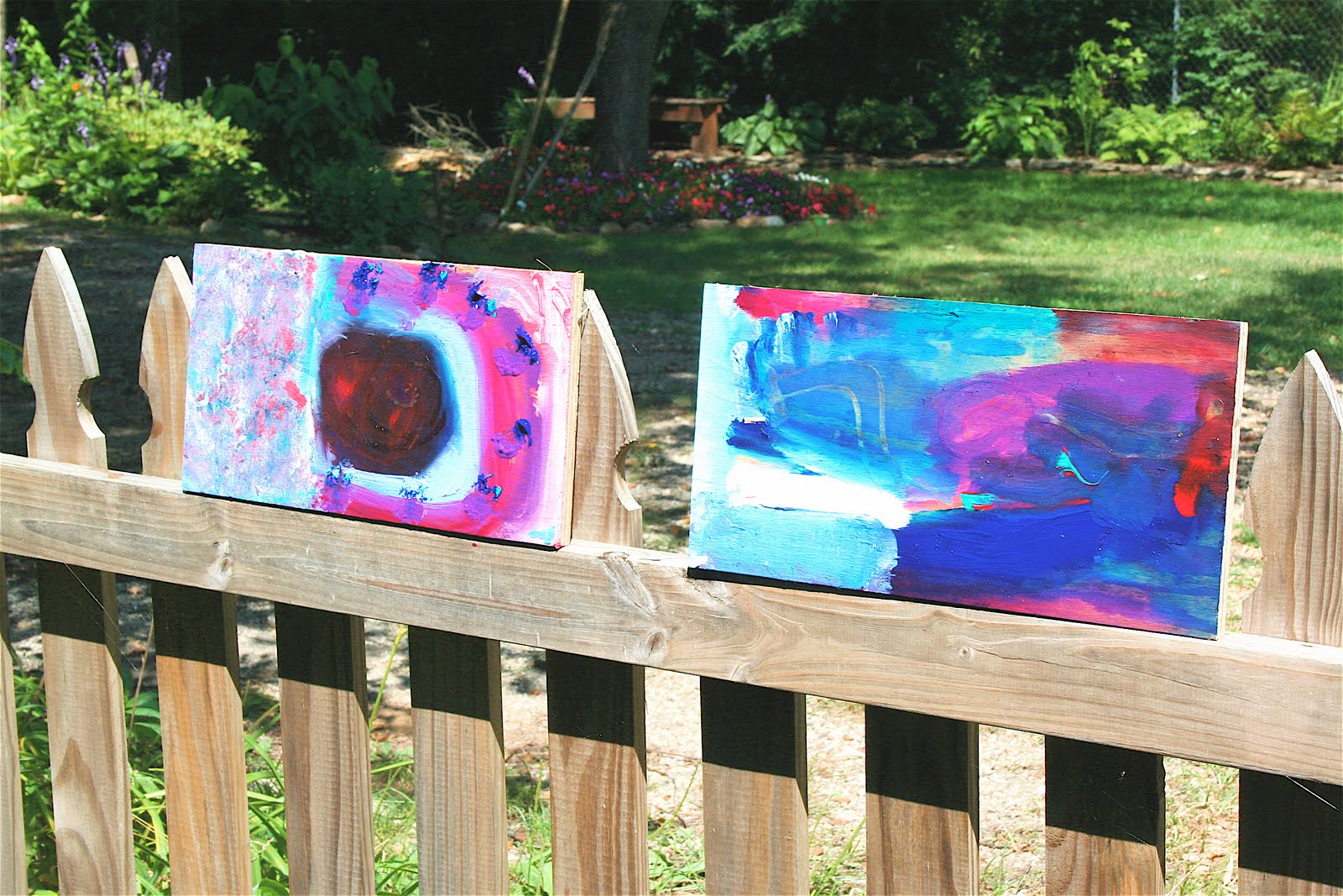 I also wanted to share some beautiful pictures the children painted this morning. We had some old pieces of wood laying around, and the children have been wanting to do some painting, other than water coloring that is, so we got out the acrylics some sponges and they loved it.
